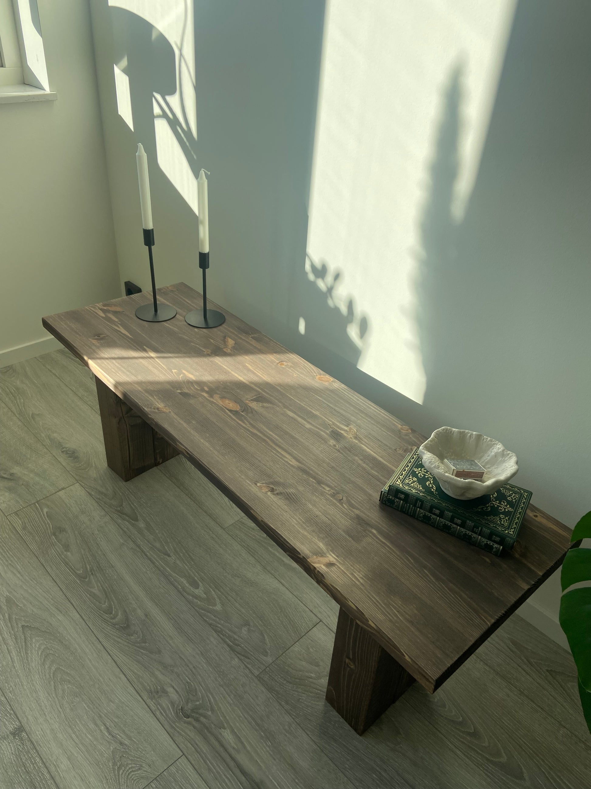 Passar perfekt vid soffan och ger ditt vardagsrum ett lyft. Toppskiva i brunlackat furu vilket gör att kvistar och ådror är en del av utseendet som gör varje soffbord unikt.